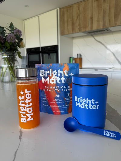 Bright Matter is a Daily Cognition & Vitality Blend with 20+ clinically-backed ingredients designed to support focus, energy, mood, and long-term brain health in one daily scoop.